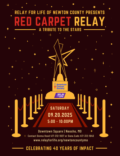 Join us for a night of hope, remembrance, and celebration as Newton County rolls out the red carpet for the 2025 Relay For Life! This year’s theme, "A Tribute to the Stars," honors the heroes who have faced cancer with courage and shines a spotlight on the community fighting to end it.