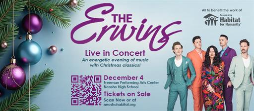The Erwins live in concert with an energetic evening of music with Christmas classics! All to benefit the work of the Neosho Area Habitat for Humanity.